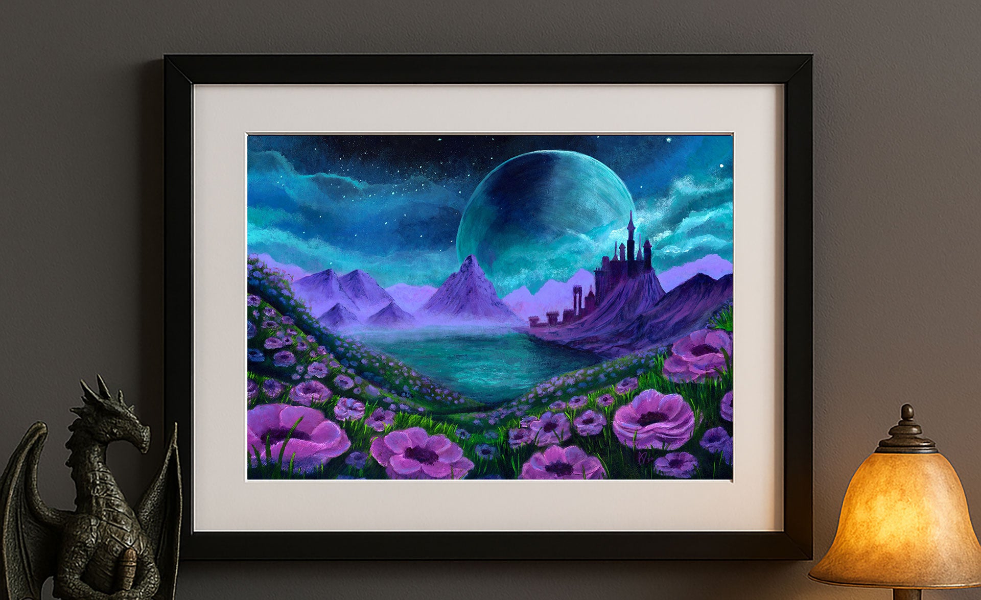 My work blends bright palettes with imaginative landscapes, the kind of art that transports you somewhere beautiful the moment you see it.